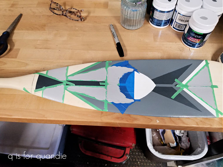 Then she even tries out her color selections on paper before painting the actual paddle.