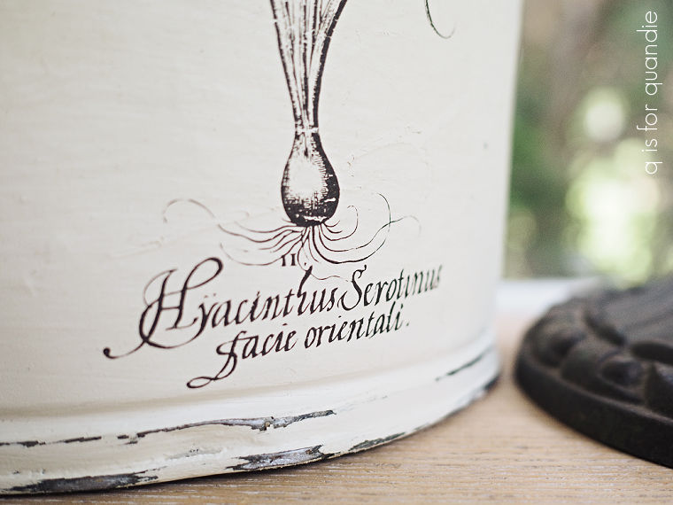 So I decided to go ahead and paint the oval bucket in Dixie Belle’s Drop Cloth. Then, rather than adding a transfer, I thought it would be fun to try an I.O.D. paint inlay this time around.