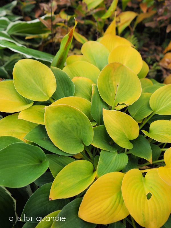 A general rule of thumb for the hostas in my garden is that the ones that aren’t variegated seem to get the most vibrant color in fall.