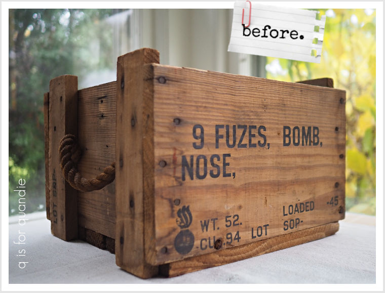 Earlier this year I picked up this wooden crate at my friend Jackie’s garage sale.