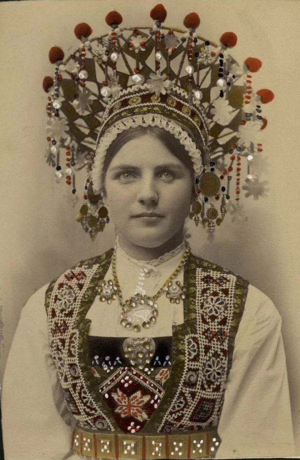But most of the crowns were made with at least some silver elements to protect the bride from evil spirits. I guess those less than pure brides were on their own when it came to being abducted by trolls or evil fairies.