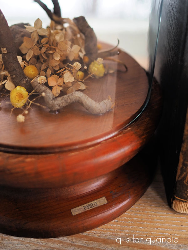 I was banking on being able to take it apart and clean the glass. The dome was held in place with some kind of woodgrain looking tape. It took about 20 painstaking minutes with an exacto knife but I eventually got the tape off and was able to wash the glass.