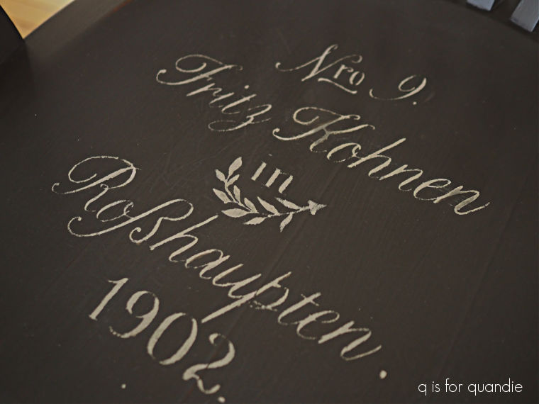 I sanded the stenciled design down, along with the rest of the chair to give it some age.