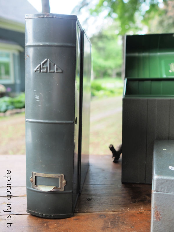 These are the two largest boxes and I rather love the original patina on both of them. Especially the one on the left. I may not paint either one of these, but instead just clean them up and give them a protective coat of sealer to help make them functional for storage.