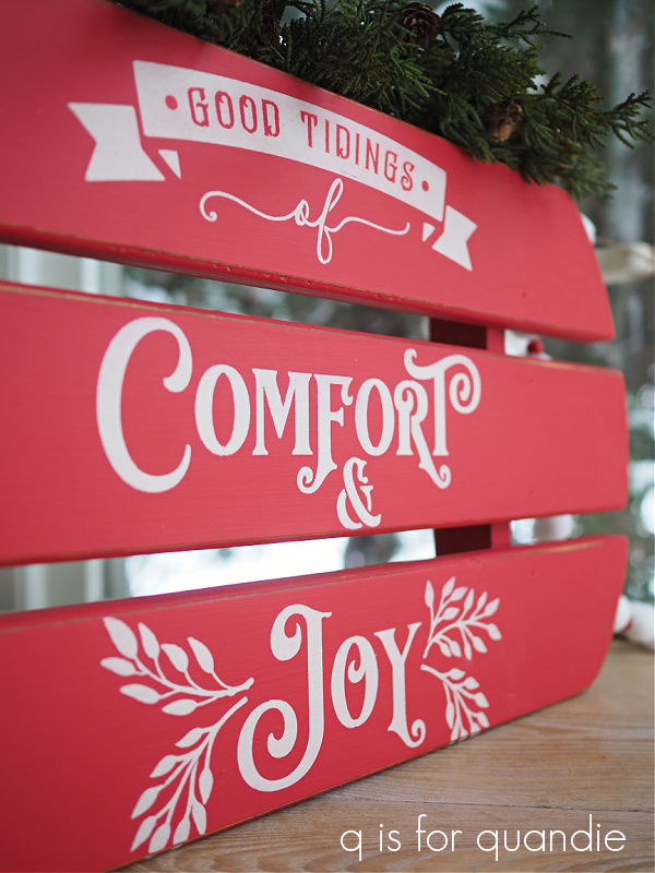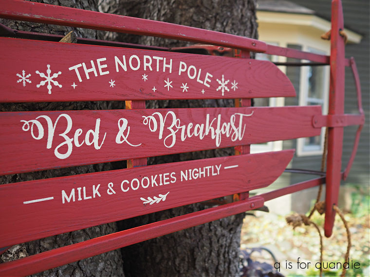 I get them from a variety of places, and some of the sleds are done with a mishmash of stencils (each line of text is from a different stencil). The “Bed & Breakfast” one on the barn red sled is one single stencil though, and I got it from The Stencil Smith (here). I’ve had the rest of the stencils for years now, so I can’t remember exactly where each one came from. I do know that the “Saint Nick’s” wording came from a stencil from Maison de Stencils, and I think they may have gone out of business. Another of my other go-to stencil places is Wallcutz. I like being able to order stencils in different sizes. It can be challenging to find stencils with wording that fits on the narrow slats of a sled seat 🙂