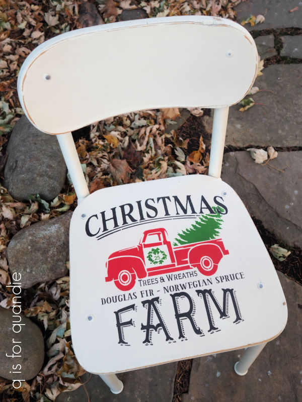 Then I went through my stash of stencils.  I have a few that fit on these little chairs.