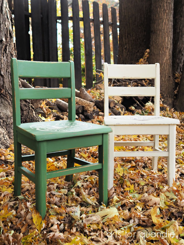 A little while back I purchased a pair of schoolhouse chairs at my friend Amy’s garage sale.