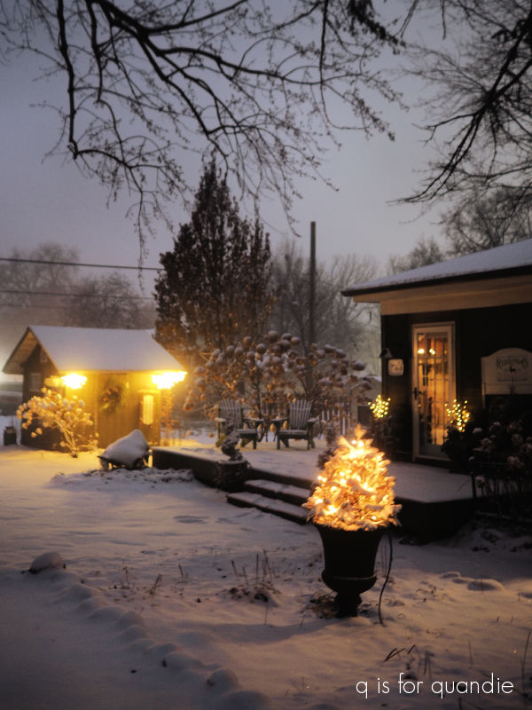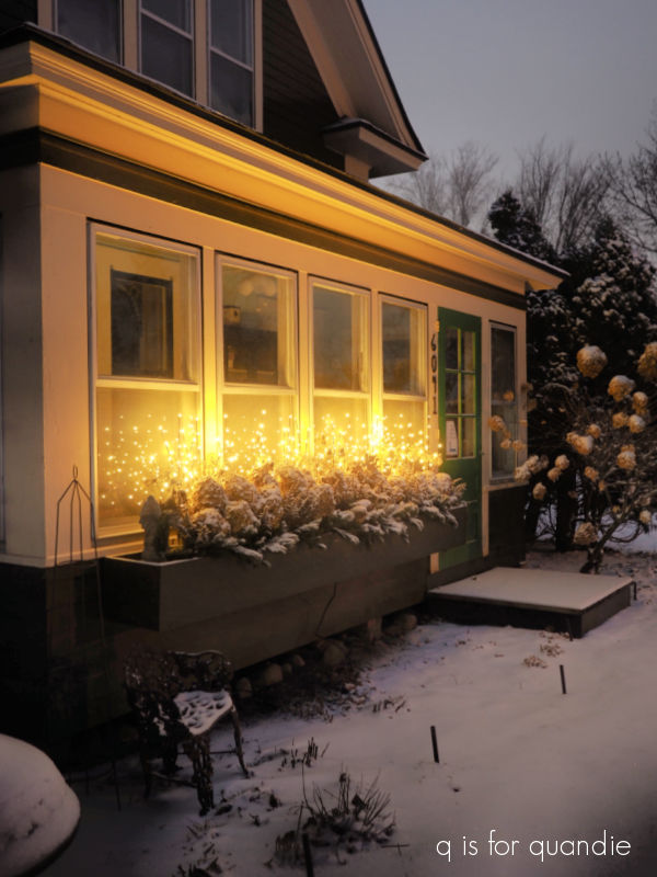 I’m purposely not calling them Christmas lights because I like to keep them on through the winter, well past the holidays. I think you can do that with white lights.