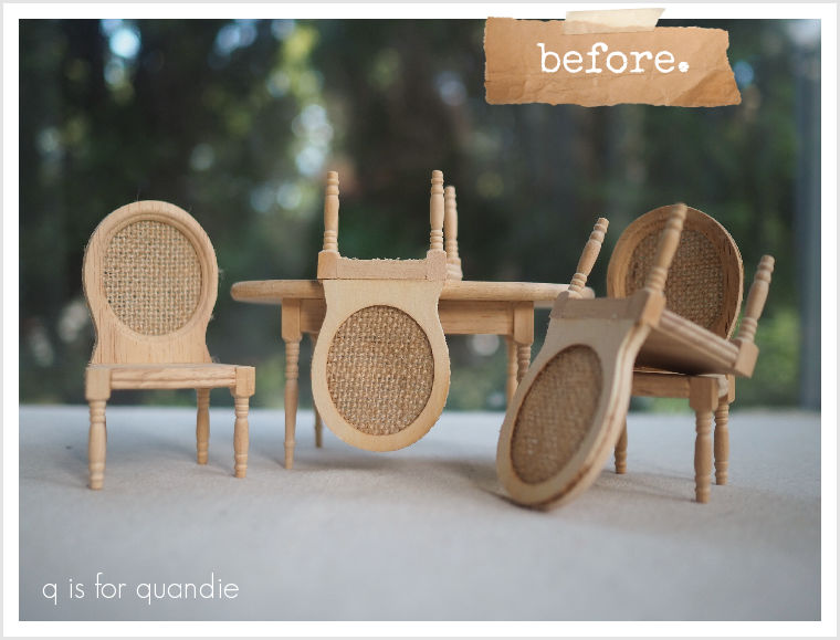 This is the same dining set that I have in my dollhouse, and I decided to paint this first set in a similar fashion to my own.