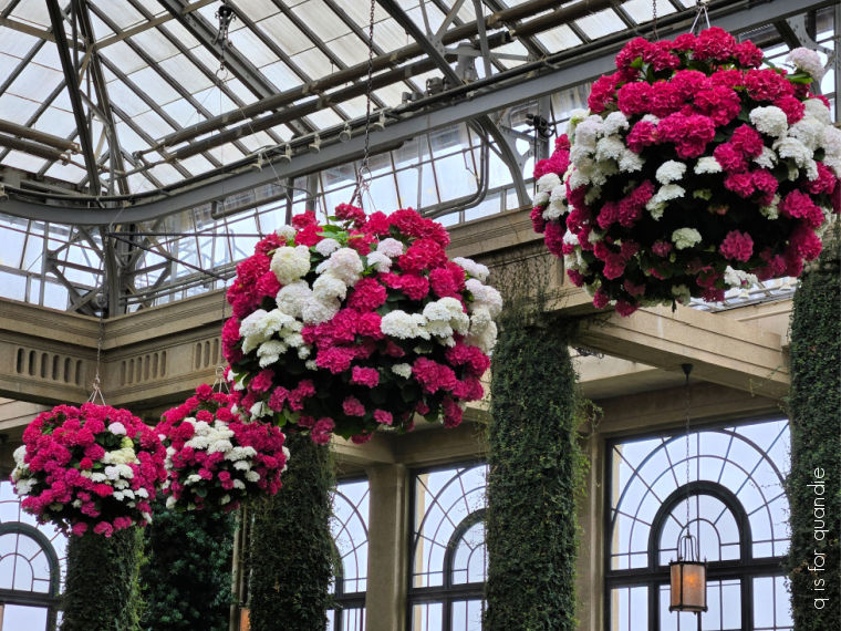 The perfectly round globe shaped hanging planters in the conservatory were gorgeous.