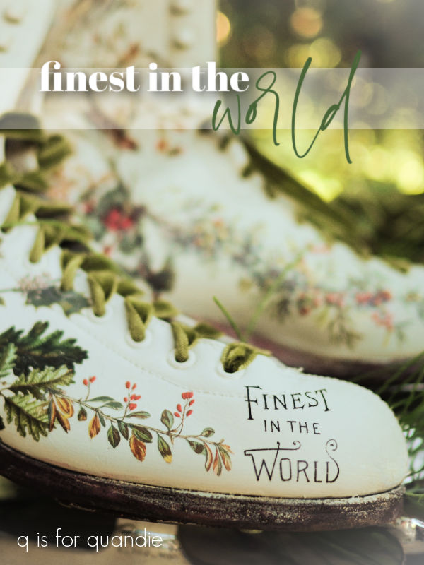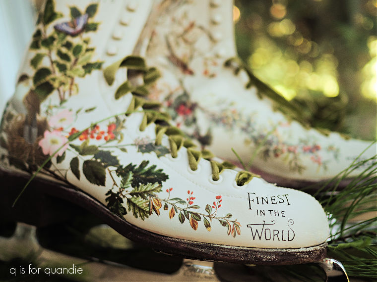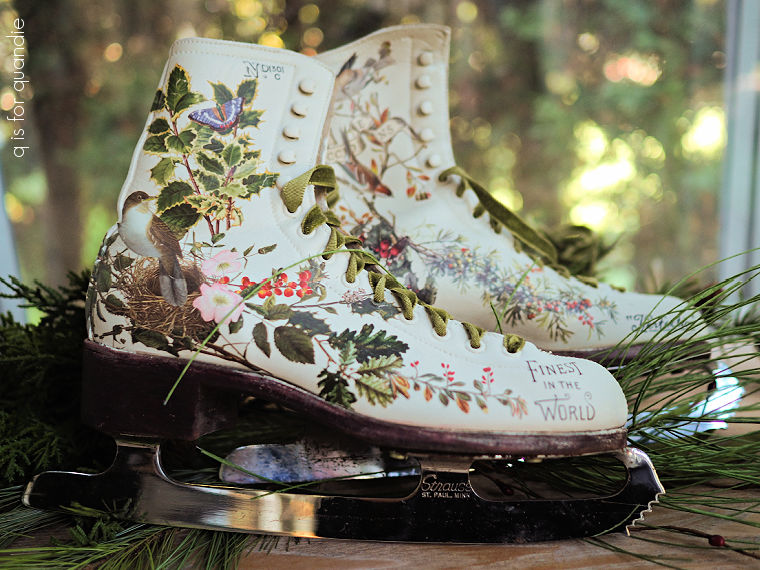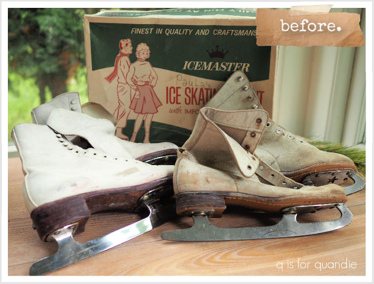 I have to admit to a little inside joke with that choice. You see, when I went to clean up this particular pair of skates I found a handwritten note tucked inside one of them. It was addressed to Mary Alice and basically said that this pair of skates were worn by a competitive ice skater and the blades alone cost $100 (and who knows how long ago that was). It went on to say that “If some child wants them – fine, but someone may want to check at a skate exchange and see if they are worth some money”.