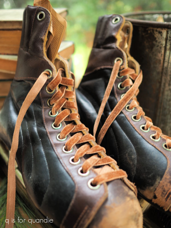 Earlier this summer I came across an estate sale where they had an entire storage closet full of old ice skates. I came home with three pair (and a few other finds).