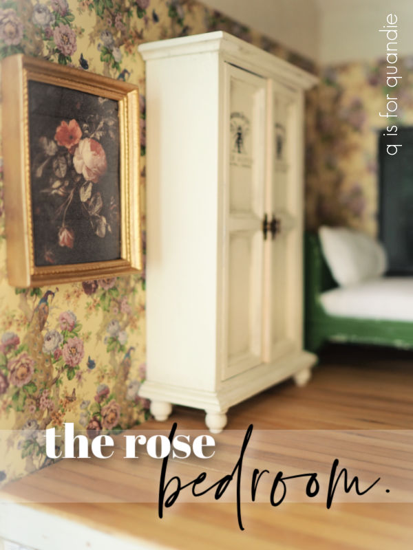 I chose the Bradbury & Bradbury Peacock & Rose Floral wallpaper from Miniature Crush for this room. I wanted a floral with a vintage sort of feel, and I think this one did the trick.