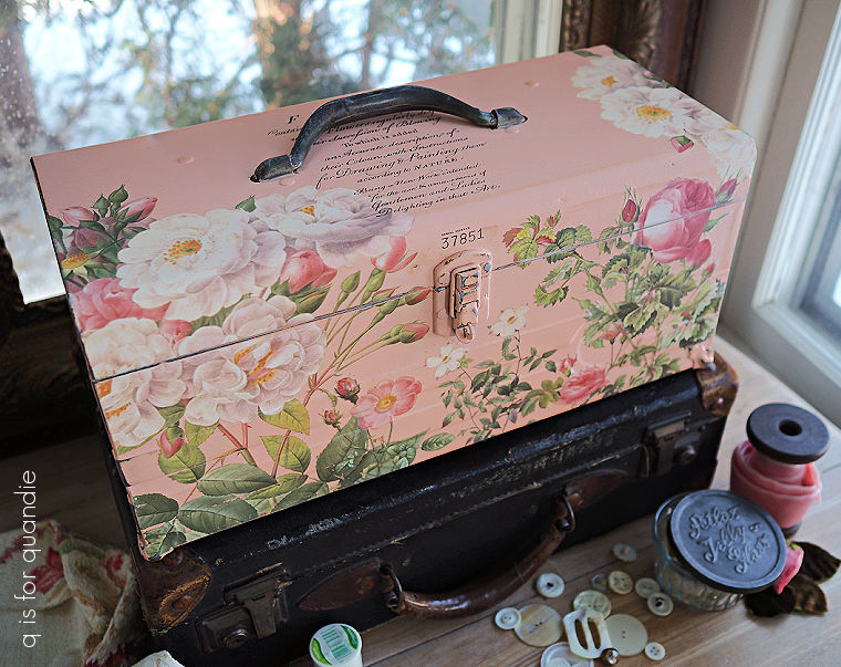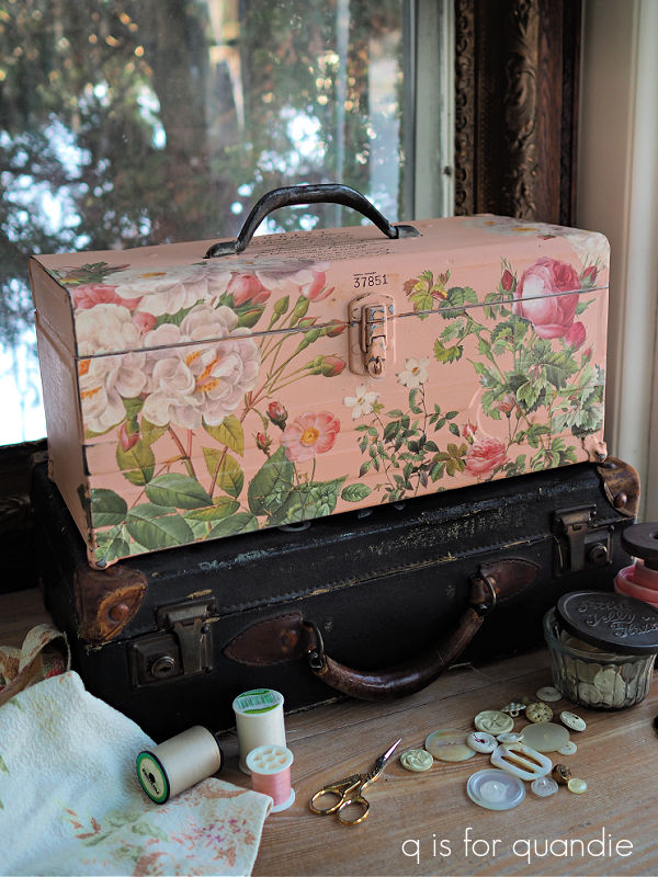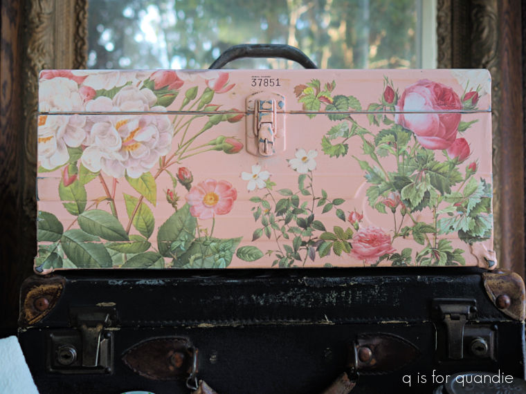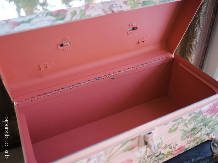 I painted the inside of the toolbox in Dixie Belle’s Cottage Door and then sealed it with their flat clear coat to give it extra durability.