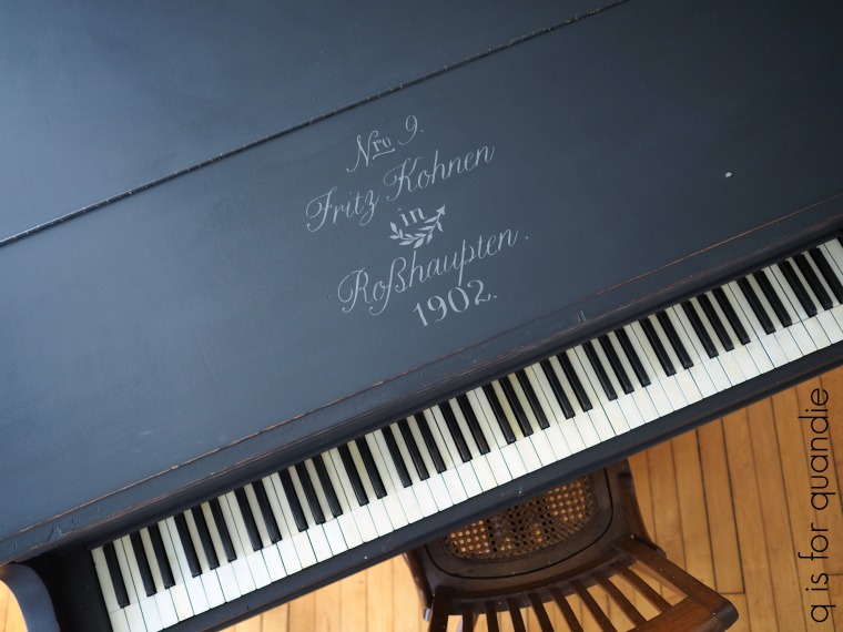 If you’ve read my blog for long, you know that no one in our household actually plays the piano. It’s a long story, but someone gave me this piano and I had intended to learn to play. Um, yeah, in my spare time (which I still don’t seem to have even though I’m now retired from the day job). However, it has turned out to be the most versatile piece of furniture for me. It’s the perfect spot for folding laundry, wrapping presents, doing a jigsaw puzzle, or putting out a buffet at a party. I also have a huge drop cloth that I drape over it and it becomes my workbench in the winter when I can’t be out in the carriage house.