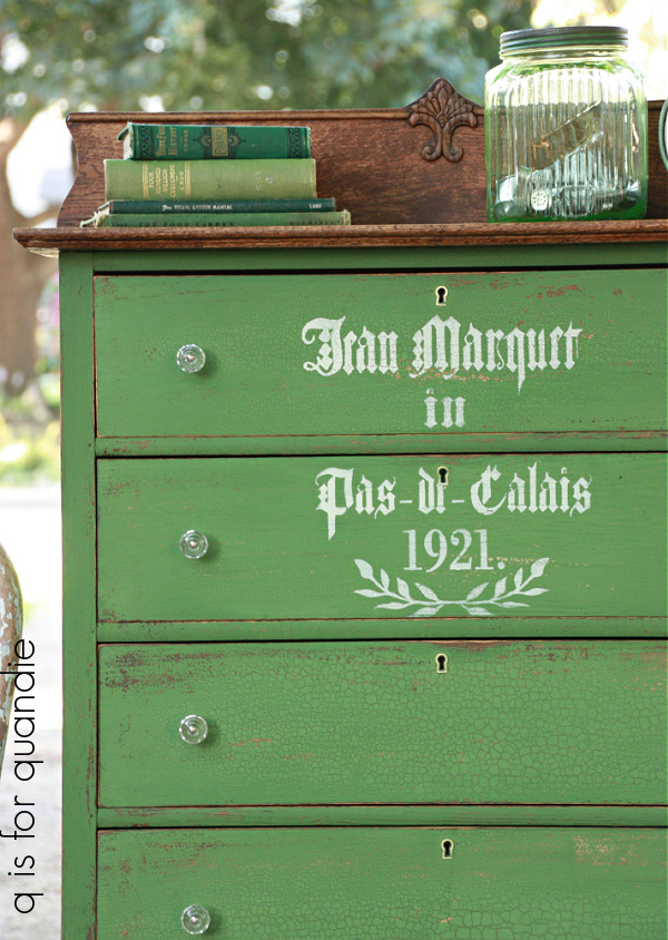 I sanded the stenciled design down, along with the rest of the chair to give it some age.