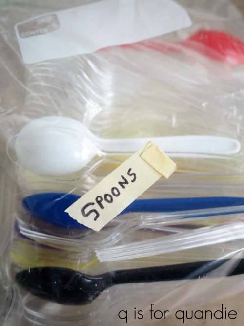 I used to always shake my milk paint in a glass jar and the marble is pure genius for that. It was also a very environmentally sound practice. However, Mr. Q eventually got tired of washing out those jars for me (he does all of the dish washing in our house, we don’t have a dish washer). So I switched over to stirring my milk paint in a disposable solo cup with a plastic spoon. I purchased what may prove to be a lifetime supply of plastic spoons at a garage sale for a dollar and I haven’t run out yet.