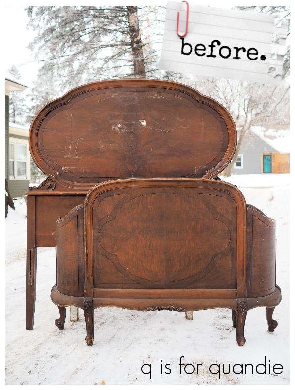 This one needed just a little bit of work before I got started painting. Ken had to reglue a foot at the back, and then re-attach the top section to the bottom section. The seller had taken them apart, but they weren’t meant to come apart. Once the two sections were put back together, Ken also had to re-attach the trim that went around the spot where the two came together.