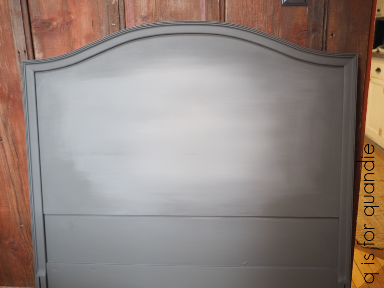 Besides making painting this one easier with a dark color, I also chose the Silk paint because it doesn’t require a topcoat so it saves the effort of waxing or adding a clear topcoat. Plus, it has a built in stain blocker, just in case that reddish stain decided to bleed through a bit. That isn’t usually a problem if you use a dark color, but sometimes that bleed thru can create a shadow through dark paint.