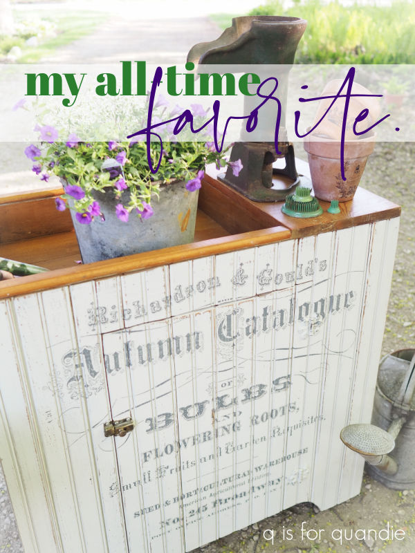 Then I got to work painting. I painted the outside and the upper inside with Dixie Belle’s Drop Cloth. Once dry I sanded lightly to distress.