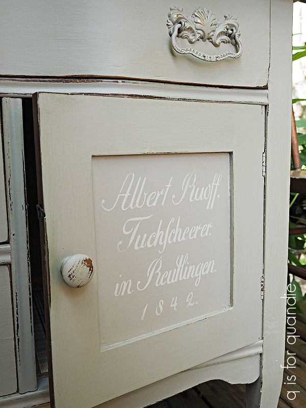 Once the transfer was in place, I added a topcoat of Dixie Belle’s flat clear coat over all of the Drop Cloth and over the transfer. The Prickly Pear interior didn’t need a topcoat since it’s the Dixie Belle Silk paint with a built in primer and top coat.