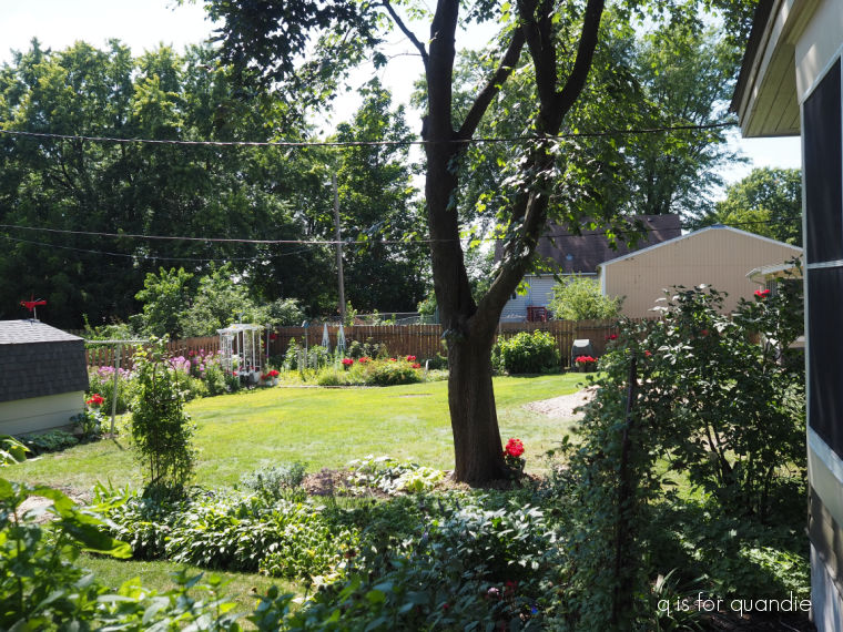 See it back there behind the potting shed?  It was a tangled hot mess, and it was next to impossible to prune.  However, it did a great job of providing privacy in our backyard.