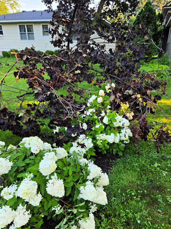 Unfortunately towards the end of last summer the lilacs ended up with leaf spot fungus and once again looked awful after losing most of their leaves.