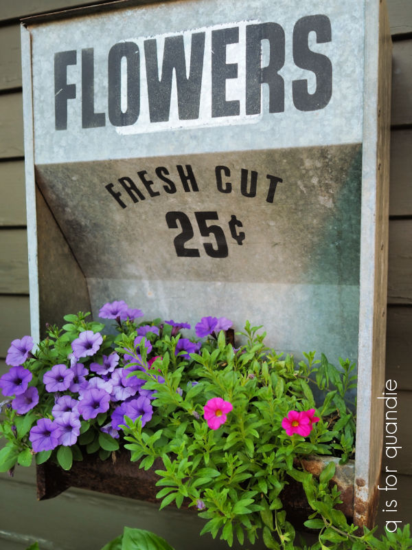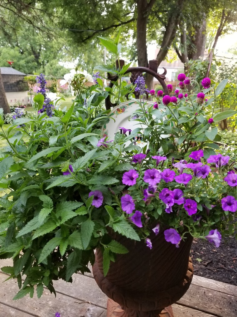 I also planted the Mini Vista Indigo in my chicken feeder planter (on left in photo below), and it was the perfect plant for that planter because of its compact size.
