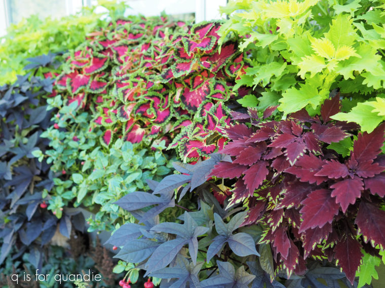 But this brings me to the real successes of 2022, the non-flowering annuals that I grow for their colorful foliage like coleus, caladium, oxalis, and sweet potato vine.