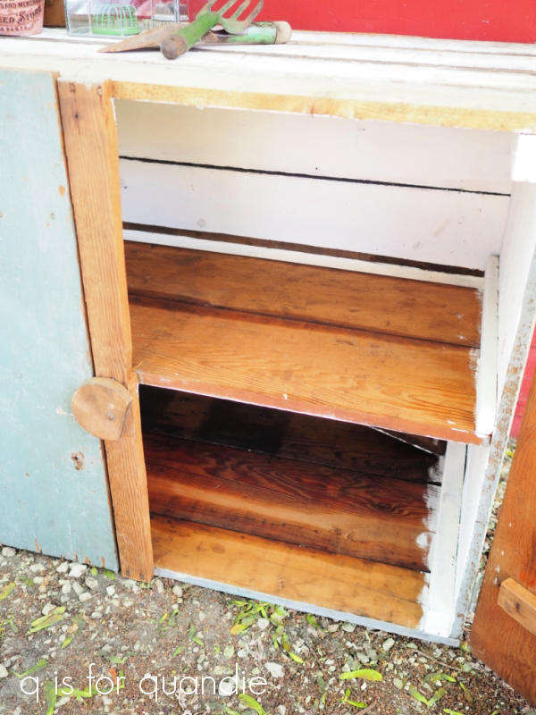 I removed the old label and added a stencil. Then Ken helped me drill some holes in the back so that I can hang it from a couple of nails. Easy peasy.
