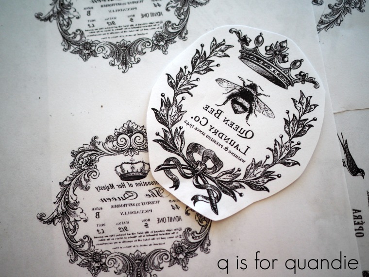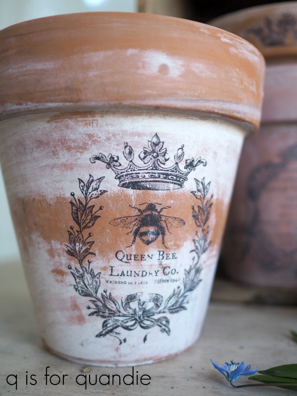 Next I printed out some reverse image graphics to use on my pots.