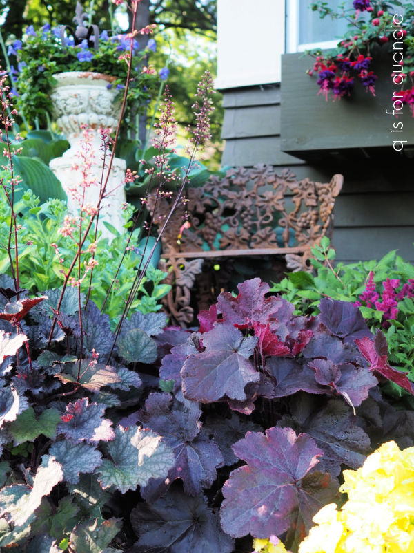 That’s a Black Taffeta Heuchera in the center, with Summer Wave Torenia and a variegated ivy trailer. I would definitely use this combo again. By the way, that heuchera is one of the $5 ones that I found in the clearance aisle at Gertens last spring.