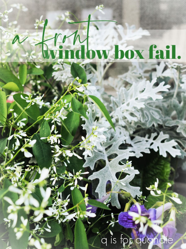 So, in the end, I’m calling this year’s front window box a bit of a fail. Although most of the plants look rather pretty up close, in combination and from a distance they just look rather anemic to me.
