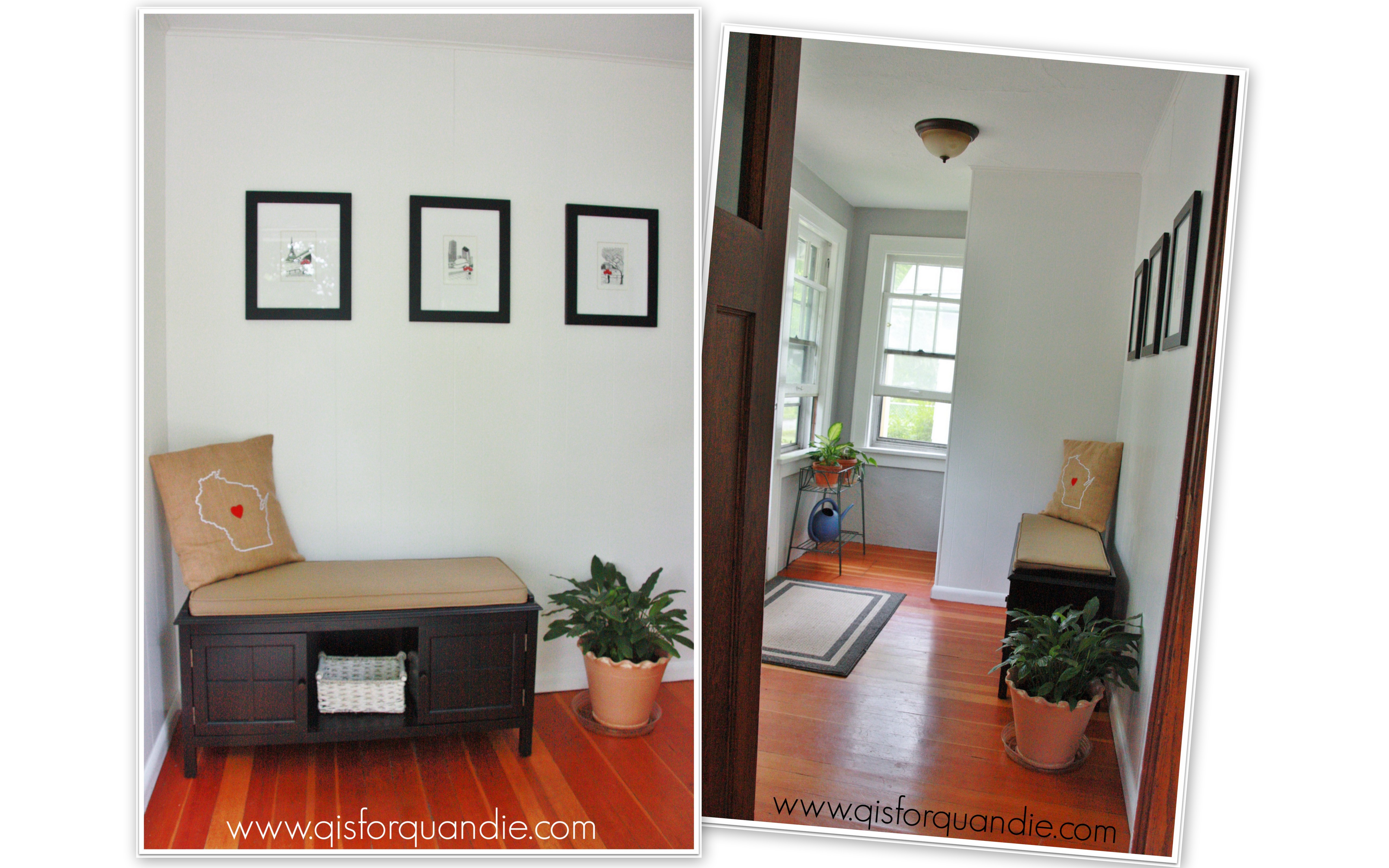 Jen has a darling little entry porch that welcomes you to her home. Her Wisconsin pillow was ordered from Etsy, and yes, Jen is originally from the Badger State.