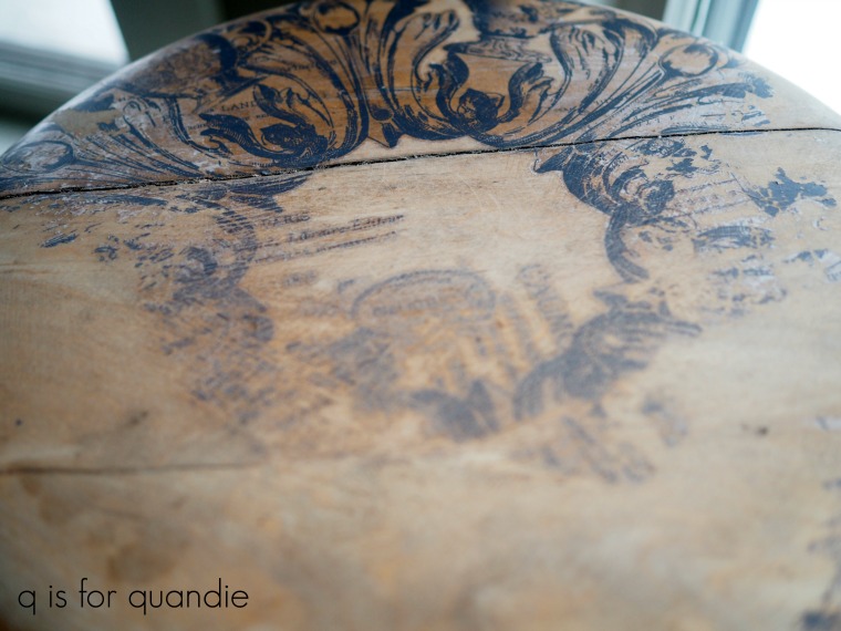 Also, if you’re wondering, I trimmed the transfer to fit the circular top before removing the backing paper and then applying the transfer.
