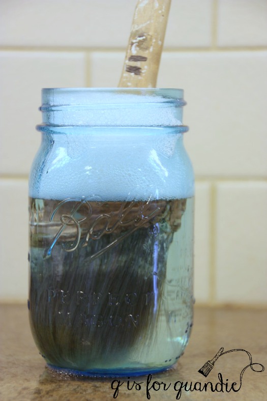 Now, sometimes things get really out of hand and I totally forget about that paintbrush in its sandwich bag for several days. Ugh. This is a great way to ruin a paintbrush. This is the only time I will resort to soaking a paintbrush. Soaking your brush is not a good practice. It will loosen up the glue that holds the bristles in place. Not only that, but just leaving your brush standing bristle end down in a jar for very long will bend your bristles ruining the shape of your brush.
