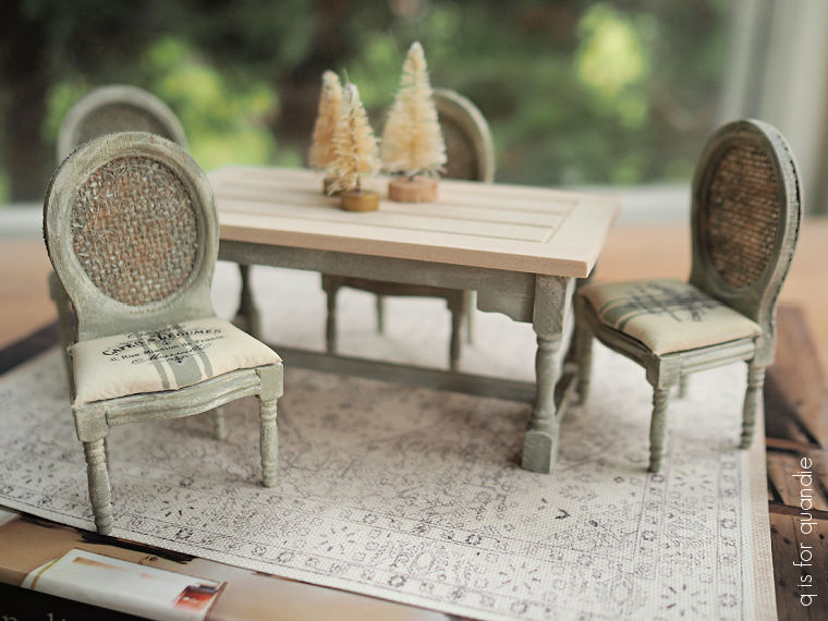 My fairy garden is planted in an old rusted out wheelbarrow that is nestled in a bed of variegated vinca. Last year it was ended up totally overgrown, so I decided to be a little more minimal with the plants this year.
