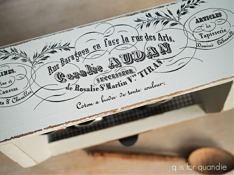 Once the paint was dry, I sanded it lightly with some 220 grit sandpaper to smooth out the surface and add a little wear to the edges. I followed that up with a coat of Dixie Belle’s Big Mama’s Butta. If you aren’t familiar with this product, I like to say that if hemp oil and wax had a baby it would be Big Mama’s Butta.