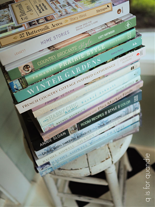 While going through my pile of decor books recently, the blue bucket on the cover of Romantic Prairie Style caught my eye.