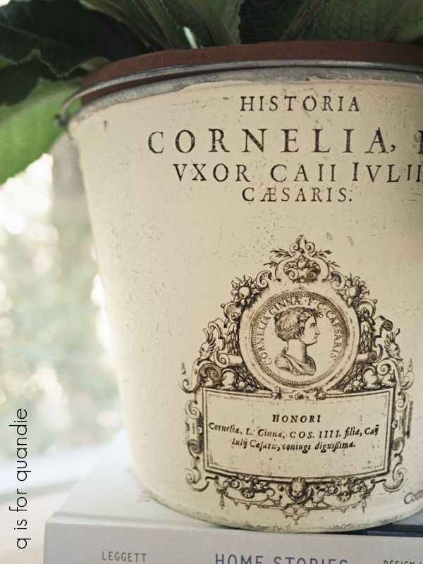 That transfer set comes with white, black and blue transfers. This is one of the blue ones. I love adding the blue ones whenever I find a pot with a blue edge like this one.