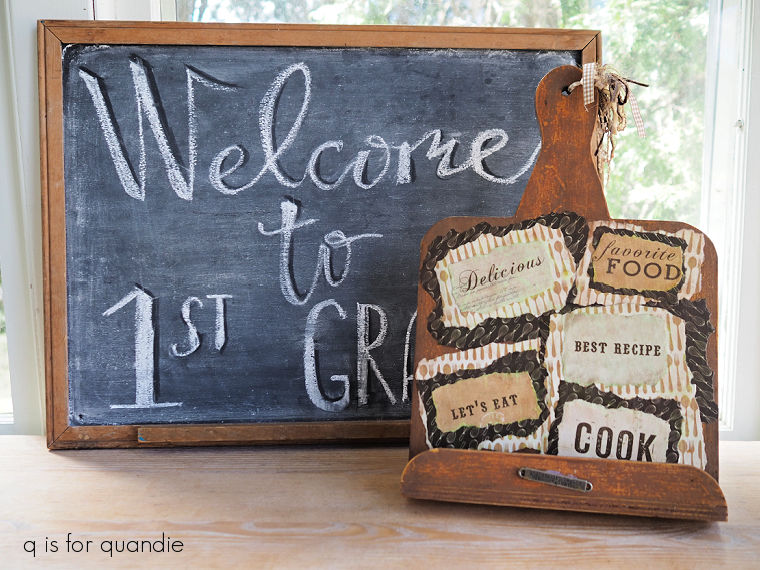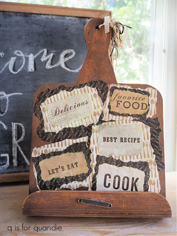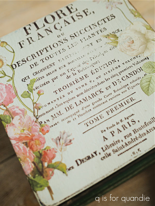 I don’t do a lot of decoupage projects, but this paper was just too good to pass up. Look at all of those fabulous labels. I also put one of the labels on a bottle that I had on hand.