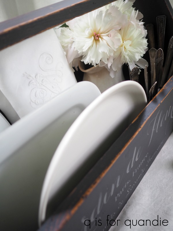 Now, for today’s giveaway. I wish I had a spare Deer transfer, but unfortunately I don’t. I do, however, have some Sawmill Gravy and French Linen to give away. I also thought, why not give them away along with the toolbox itself? They fit perfectly inside.