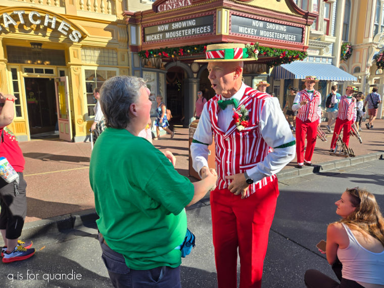 We also experienced an abrupt start to the holiday season while away. We arrived at Disneyworld on October 31, which was the final night of their Mickey’s Not So Scary Halloween party (an extra cost event that we did not attend). So for our first morning in the park on November 1, there weren’t any holiday decorations around the Magic Kingdom.