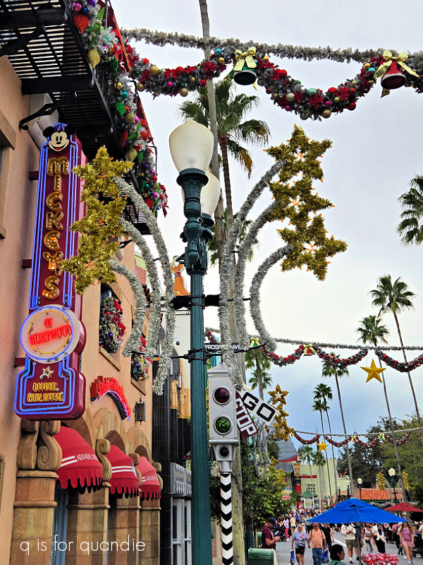 Anyway, I’m not going to bore you with a bunch of details about our time in Disneyworld, but I thought that some of you might enjoy seeing the vintage-style holiday decor that was up in one of the four Disney parks in particular, Hollywood Studios.