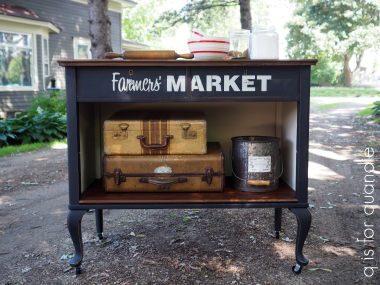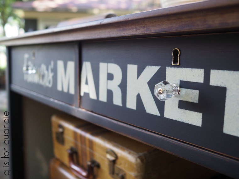 As you can see in those close up shots, the finish on this piece was very alligator-ed. It had to have been stored somewhere hot (like an attic) for some length of time. I love the textured look I get using milk paint over a damaged finish like this. I didn’t get any chipping with my milk paint, but sanding over that bumpy finish created an aged look that I love.