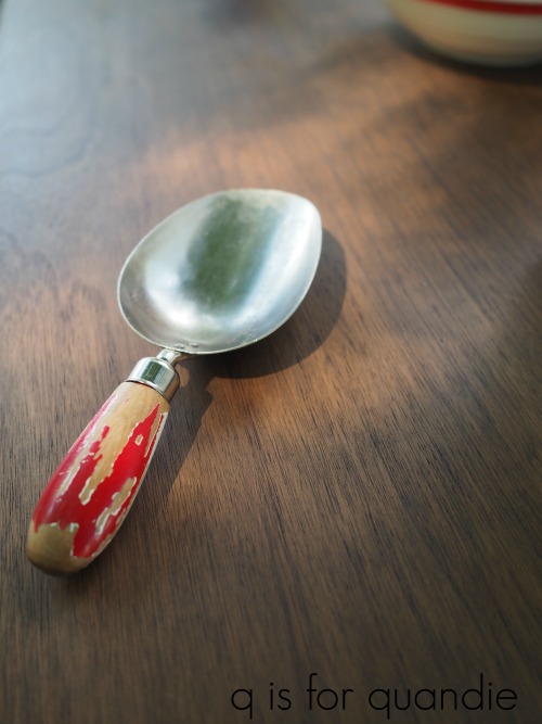 I swapped out the original knob, which was rather boring, for this white enamel knob.