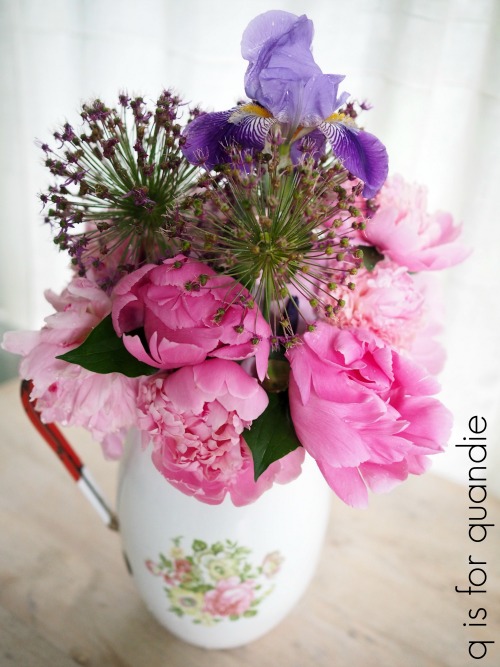 I thought this one would make a great vase for my peonies, which are just starting to open.