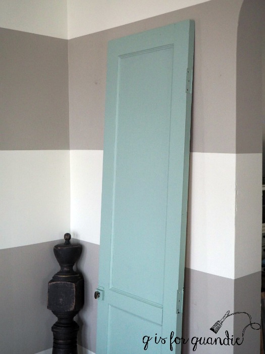 When I saw this tall vintage door (behind the sign) at a garage sale last summer I thought about my own door to nowhere and decided to snatch it up despite its banana yellow paint.
