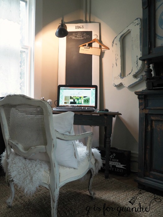 I’ve added a vintage light, some vinyl Cricut numbers and and old hanger with an inspiring message.
