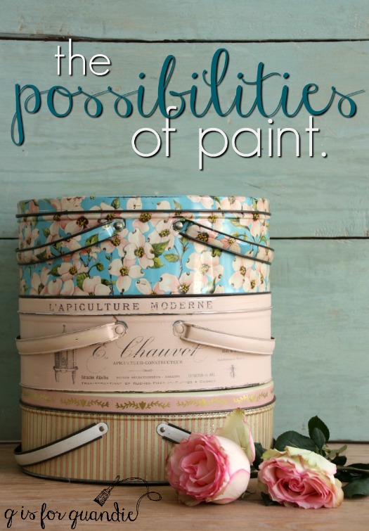 This technique of using milk paint over Fusion paint with a little Beeswax Finish in between could easily be used on a piece of furniture, or anything else that has an original color that you don’t want to see.